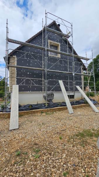 Isolation de France vous présente une réalisation d'isolation thermique extérieure aboutie à Bonneval, près de Chartres. Cette maison ancienne dispose de très belles pierres apparentes qu'il fallait conserver, pour préserver l'authenticité de l'architecture. Nos artisans RGE sont donc intervenus pour la pose de panneaux isolants, puis l'application d'un enduit mural en contournant les pierres.