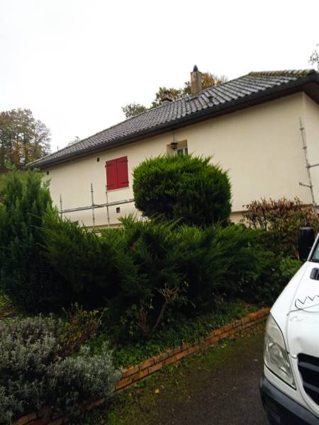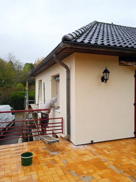Dans ce projet, l’isolation en polystyrène a été réalisée puis protégée par un enduit projeté beige, offrant un rendu soigné et contemporain, tandis que les appuis de fenêtres ont été habillés de la même couleur que la façade pour un mariage parfait avec les menuiseries blanches.